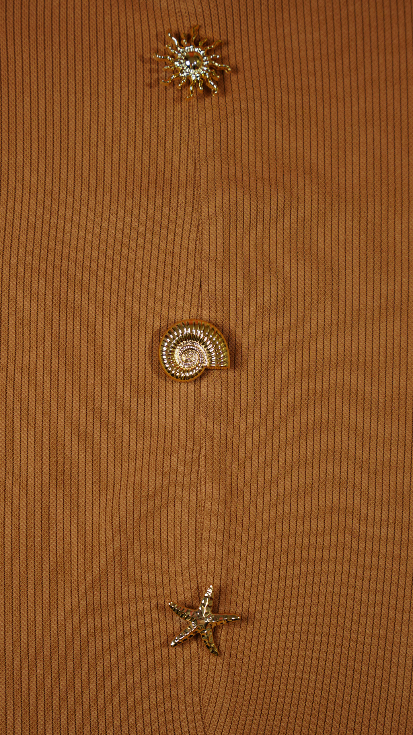 Top court en tricot côtelé Marron avec Boutons Marins Dorés